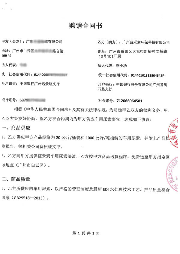 廣州藍禾素環??萍加邢薰?,是一家專業生產車用尿素溶液,尿素脫硝劑氮氧化物還原劑